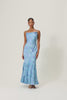Venlo maxi dress in pale blue features a softly draped neckline and a flattering V-shaped back. The design is finished with slim shoulder straps, a concealed zipper at the back, and a flowy skirt for effortless movement.