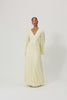 Barletta maxi dress in vanilla yellow, designed with soft gathering and a V-shaped seam below the chest for a flattering silhouette. Designed with a subtle shoulder pad, a voluminous gathered sleeve for an asymmetric look, and finished with a hidden zipper at the back.