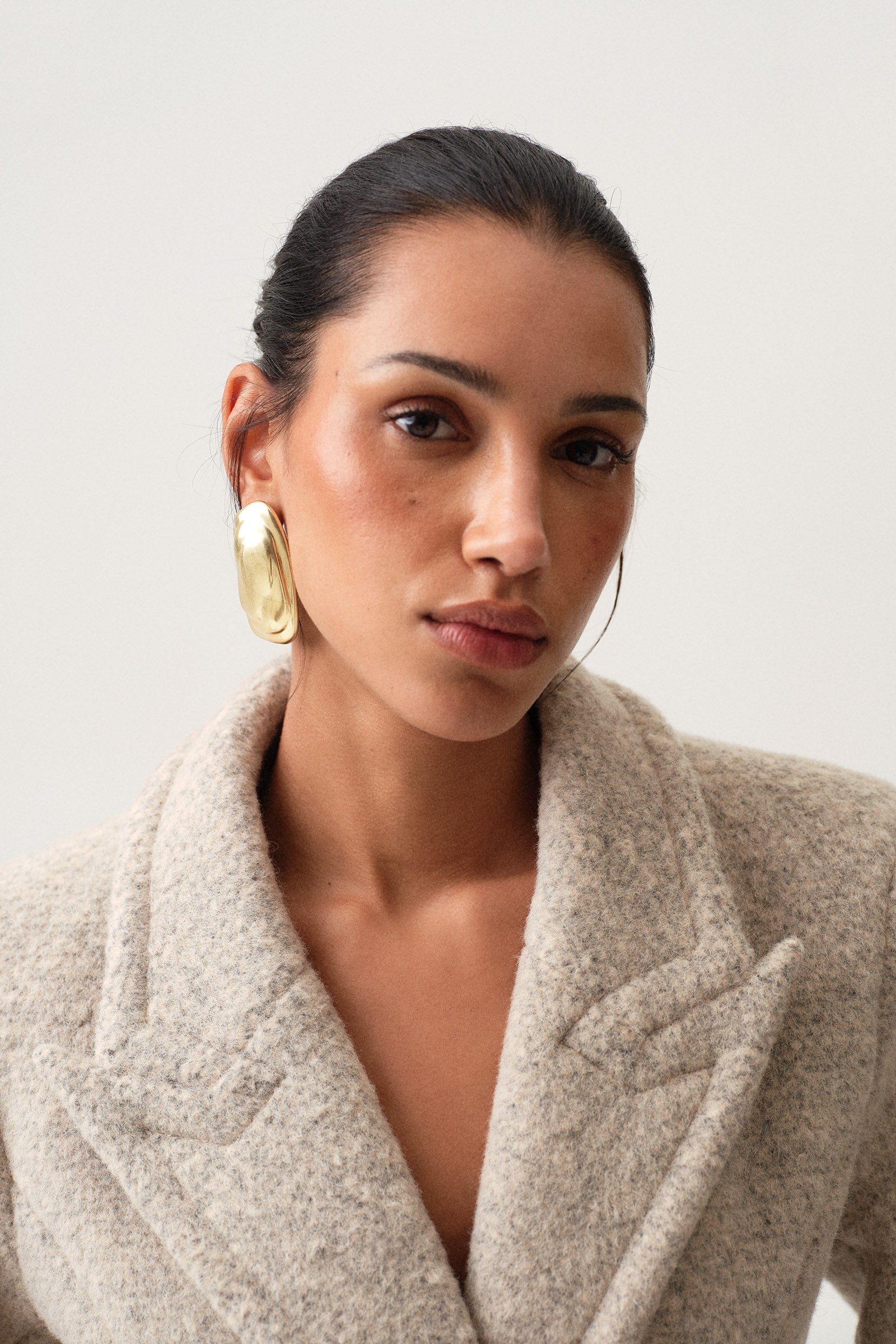 Silque Melt earrings feature a fluid, molten design with a shiny finish that exudes modern elegance. They offer a sculptural and timeless look — the perfect everyday statement.