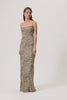 Vienna maxi dress in zebra print. The dress has an open back and adjustable shoulder straps that ties in the back. The dress is maxi lengthed and has a slit at the bottom side seam.